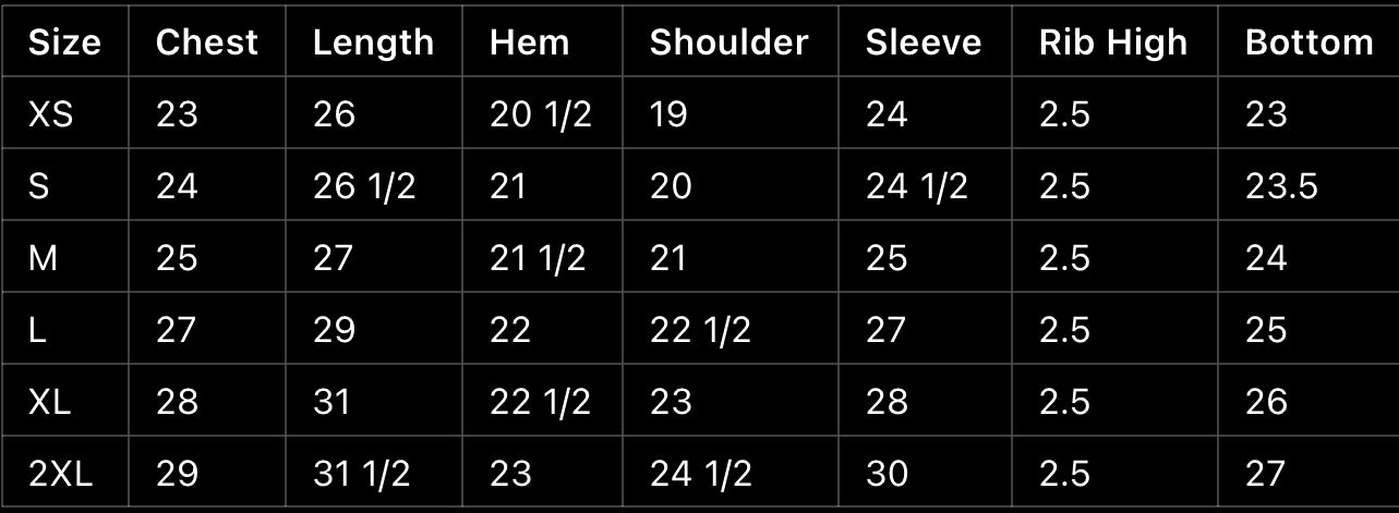 Please review the size chart in the product photos for detailed measurements. The description will also explain if a product is oversized or true to size.